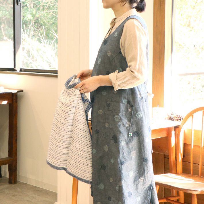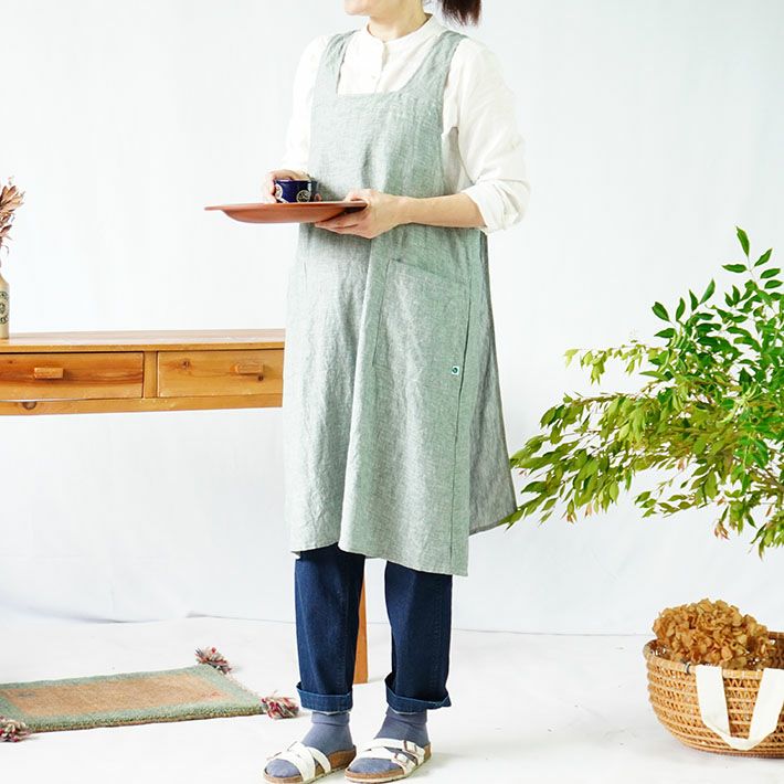 リネンに含まれるペクチンには汚れにくいという特徴があります。また、リネン地を触った時に滑らかでケバ立ちが少ないのも、このペクチンの働きによるものです。エプロンと合わせてリネンのキッチンクロスを。手ふきやお皿ふきはもちろん、お掃除のときのガラスやテレビのディスプレイをふくのにもおすすめです。