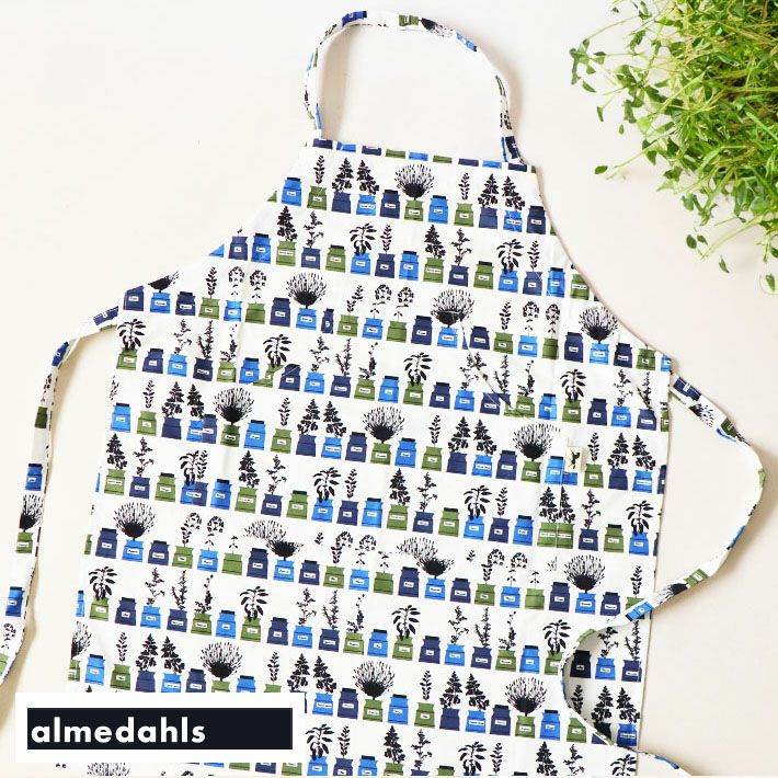 スウェーデンのテキスタイルブランド「ALMEDAHLS(アルメダールス)」のフルエプロン。明るく大胆な北欧柄は、毎日のキッチンワークを楽しくするのに欠かせないパートナーです。