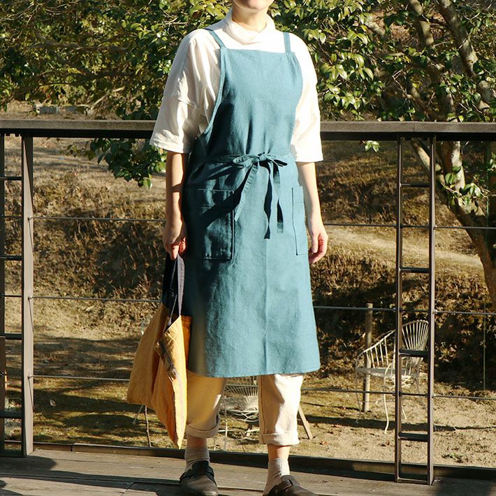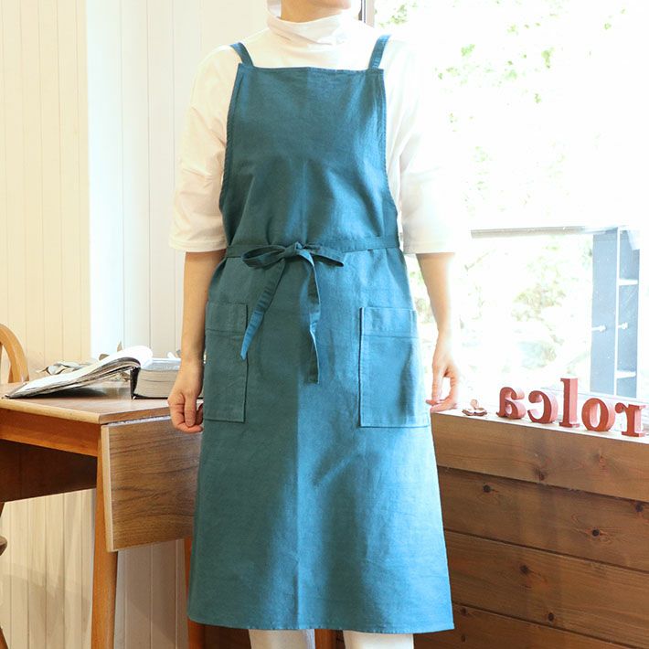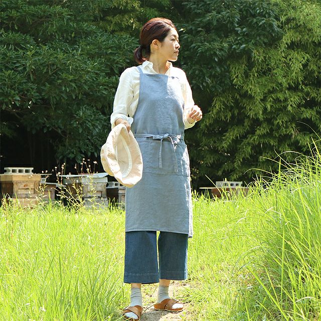 [Lino e Lina] フルエプロン マノン ブルーパヴォーネ