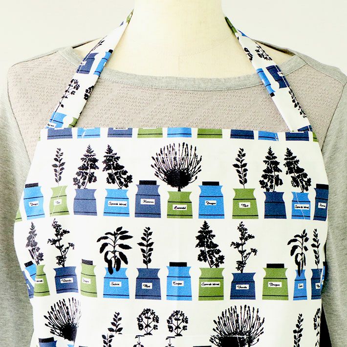 丈が長めの腰エプロン。腰から下を汚れからしっかりカバーしてくれます。