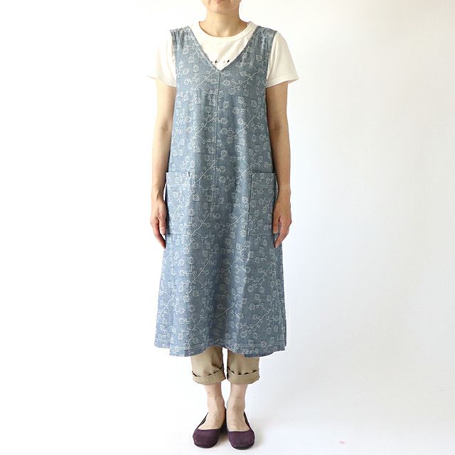 [森の8カテン]ドットダンガリー ラップフルエプロン