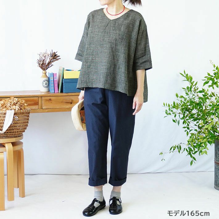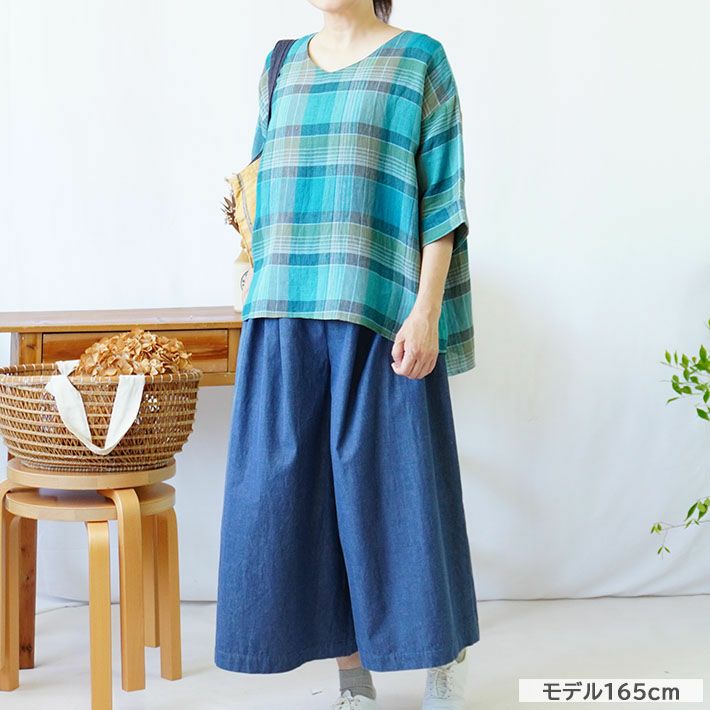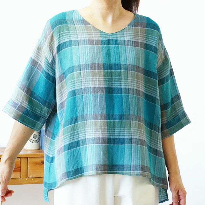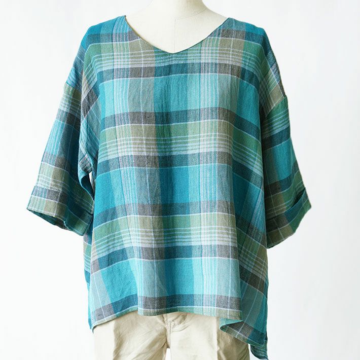 [rolca on the notes]×[森の8カテン]リネングレンチェックプルオーバー