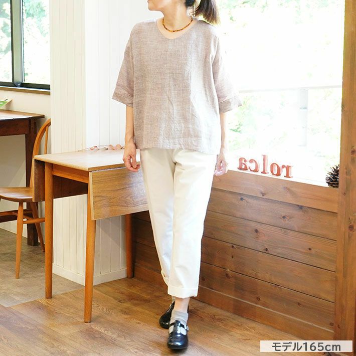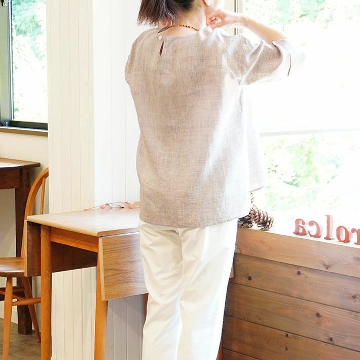 [rolca on the notes]オーガニックコットンワッシャー9分袖プルオーバー