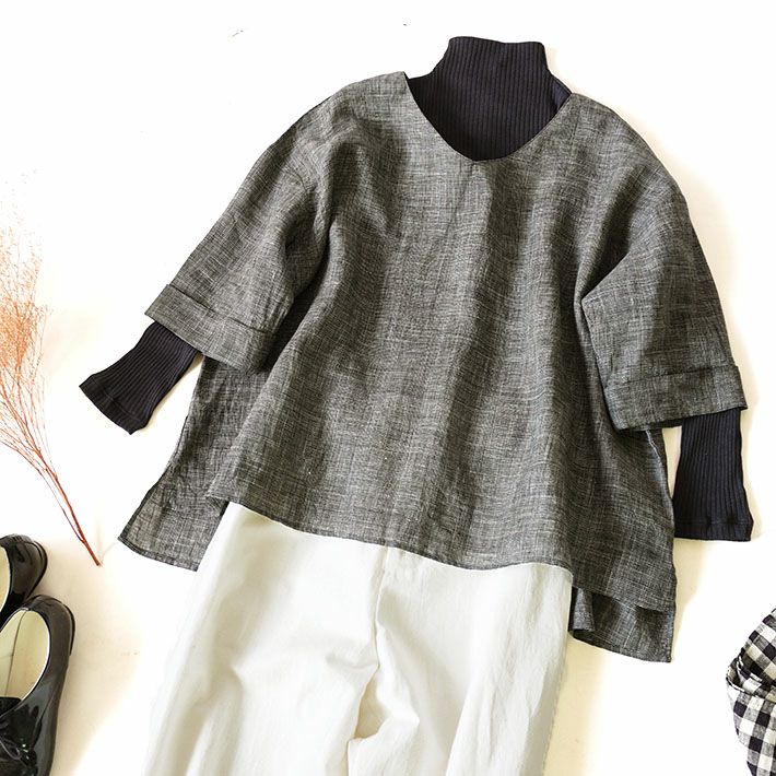 [CLOSELY]リネンウール天竺ボタンルーズタートル