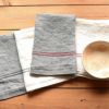 白×グレイの爽やかなキッチンクロスです。サイドに入った赤や紺の2本ラインが引き締め役に。 無機質でいてどこか落ち着きあるシンプルなデザインはインテリアにもしっくり馴染み、男性にも喜ばれそうですね。