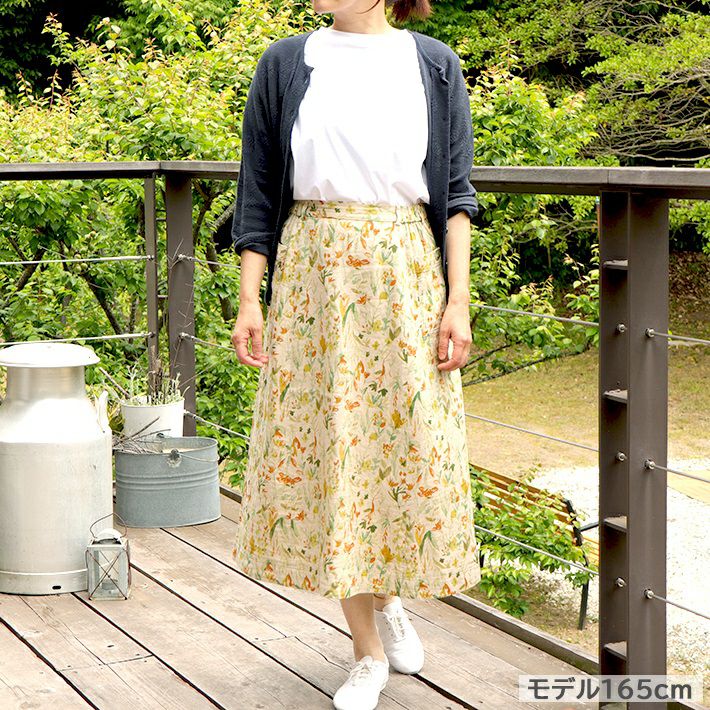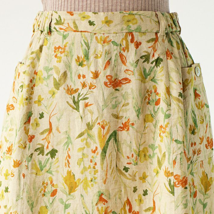 [rolca on the notes]リネンコットン花柄タックスカート