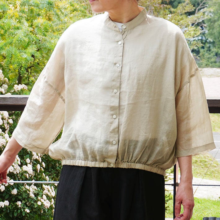 [le vent souffle]シアーリネン裾ギャザーブラウス
