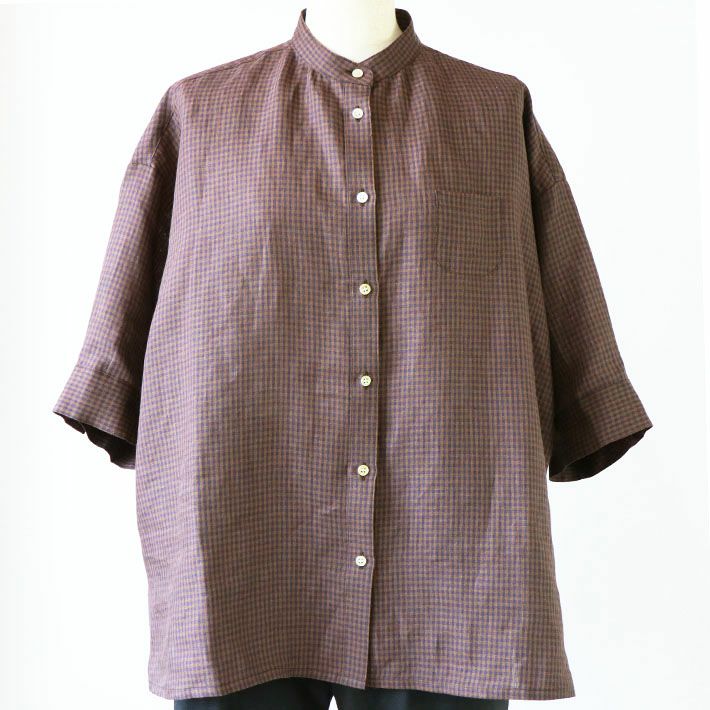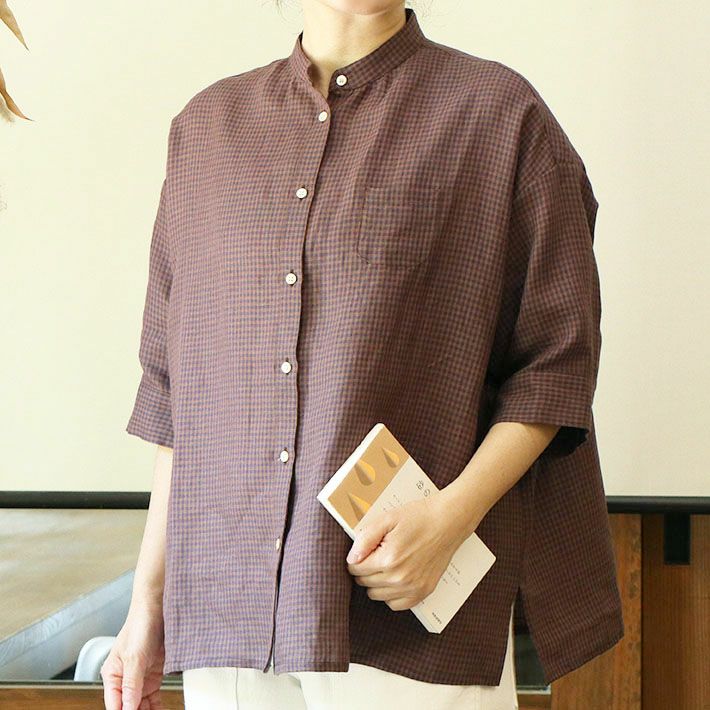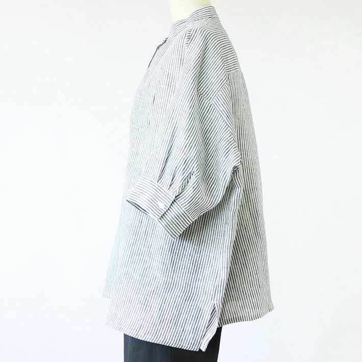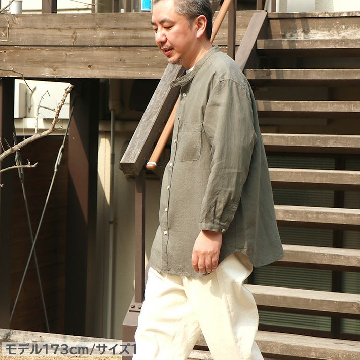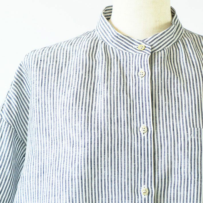 [rolca on the notes]フレンチリネン スタンドカラーシャツ