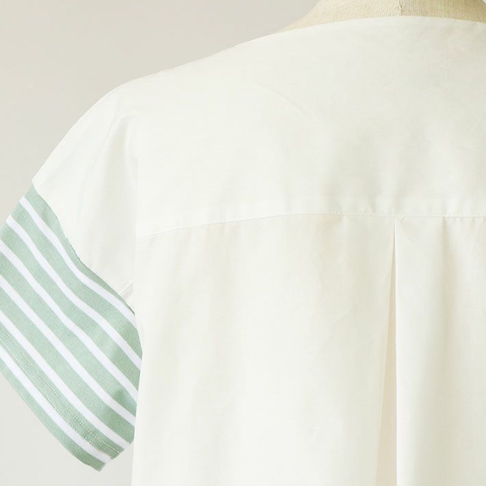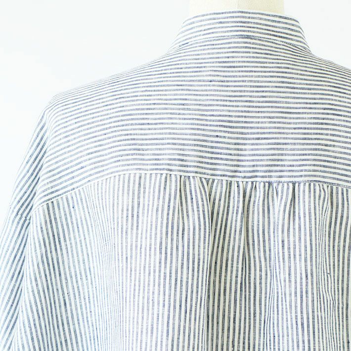 [waltz for rolca]GIZAコットンミニ衿ギャザーシャツ ストライプ