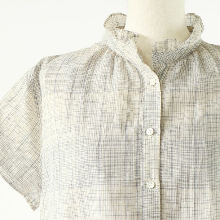 [waltz for rolca]GIZAコットンギンガム丸衿ブラウス