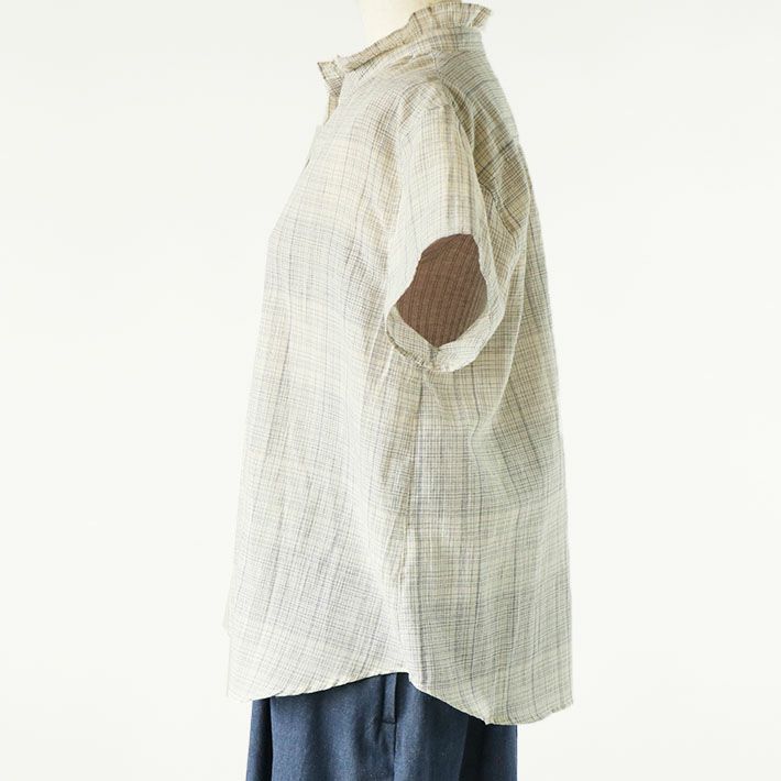 [rolca on the notes]×[森の8カテン]綿麻ワッシャーフリルシャツ