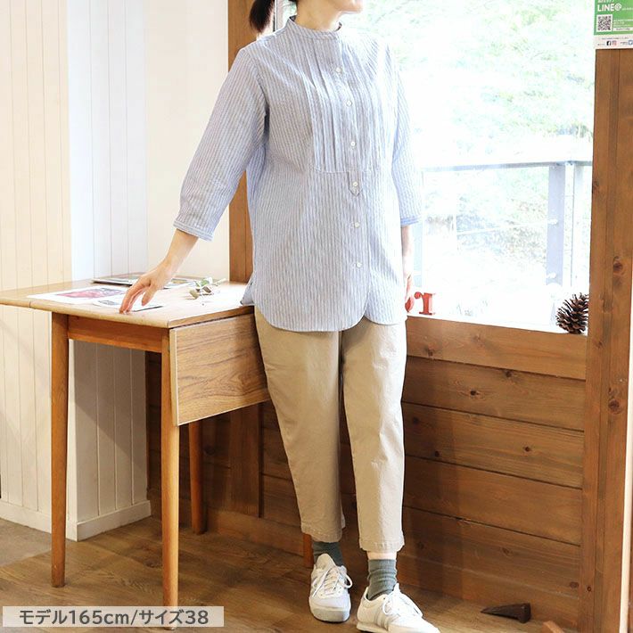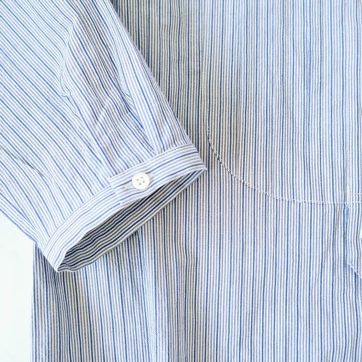 [rolca on the notes]オーガニックコットンストライプ七分袖シャツ