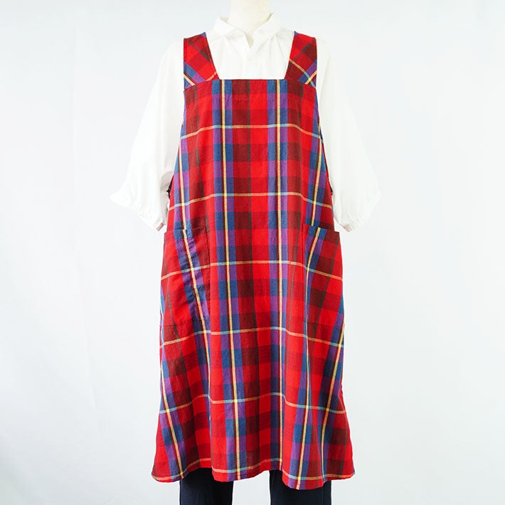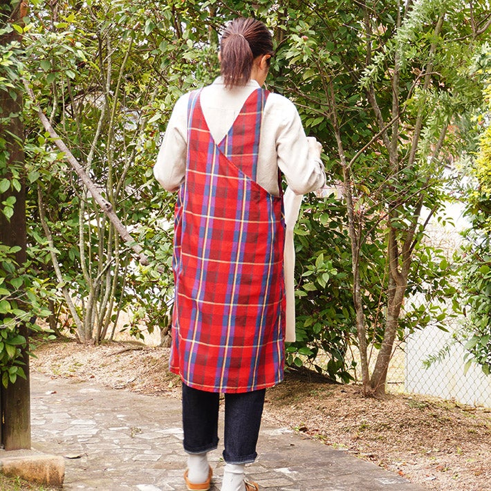 [森の8カテン]マドラスチェック バッククロスエプロン