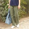 股上は深めでファスナー仕様。後ろウエストはゴムが入っています。裾に向かって細身になっているので、脚のラインもすっきり見えるシルエットです。
