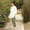 ソフトな感触ではきごこちのよい、綿ストレッチ。光沢感があり、やや細身のシルエットにすることで大人っぽいイメージのパンツになっています。