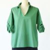 [rolca on the notes]綿麻ボイルワッシャーギャザーブラウス