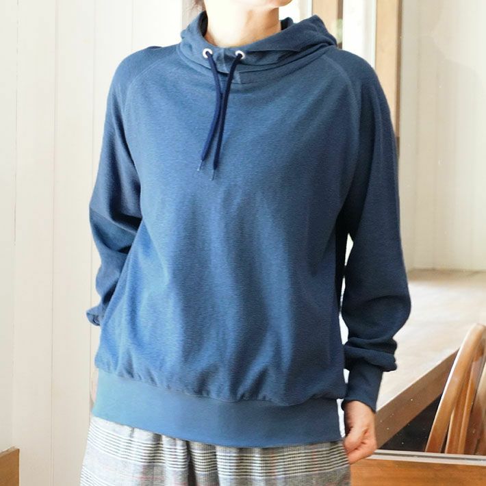 ラグランスリーブでほどよくゆとりをもたせ、肩まわりをリラックス感のあるシルエットに。 あえてカンガルーポケットをなくすことで、フーディー特有のラフさを抑え、すっきりとした印象に仕上がっています。