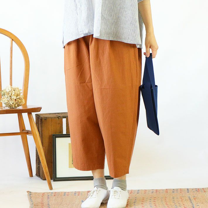 [rolca on the notes]綿麻バックサテンクロップドパンツ