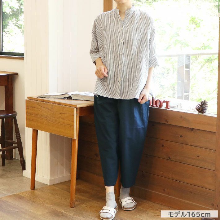 [rolca on the notes]オーガニックコットンストライプ七分袖シャツ