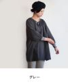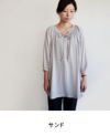 しなやかで軽さのあるリヨセル100%。ややグレイッシュなカラー配色で落ち着いたイメージです。 南イタリアのカプリ島のようなリラックスした雰囲気を思わせるラフなシルエットが魅力です。 衿ぐりにリボンを通してギャザーをよせたドローストリング仕様のネックライン。 ふんわりとしたシルエットと程よい開きのネックが女性らしい仕上がりです。