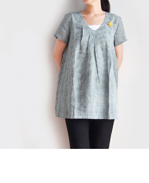 アイリッシュリネン ギンガムV/Nプルオーバー