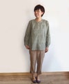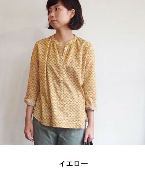 袖口や身幅にギャザーをたっぷりとった、スタンドカラーの甘すぎないチュニックです。