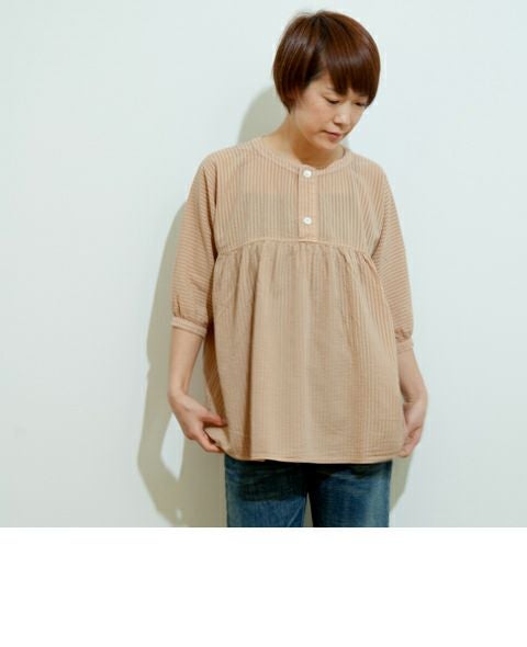 前後のヨーク下にたっぷりとギャザーを入れたふんわりとしたシルエットです。