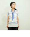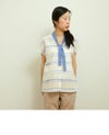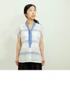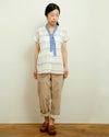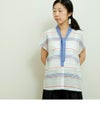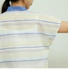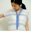 コットンリネンボーダーボータイシャツ