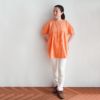 二の腕が隠れがちな袖丈、ヒップにかかる長めの着丈、体の線を拾いすぎないサイズ、と、使いやすいアイテムです。
