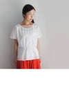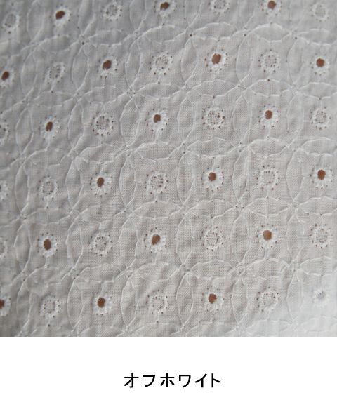 薄手の綿ローンに甘さをおさえたサークル柄の総柄レース地です。 プルオーバーは前身頃に部分的にギャザーを入れてふんわりさせ、優しくかわいらしさのあるデザインにしました。 衿ぐりはややボートネックですっきりと涼しげに着られます。