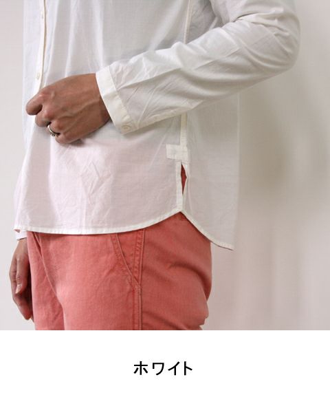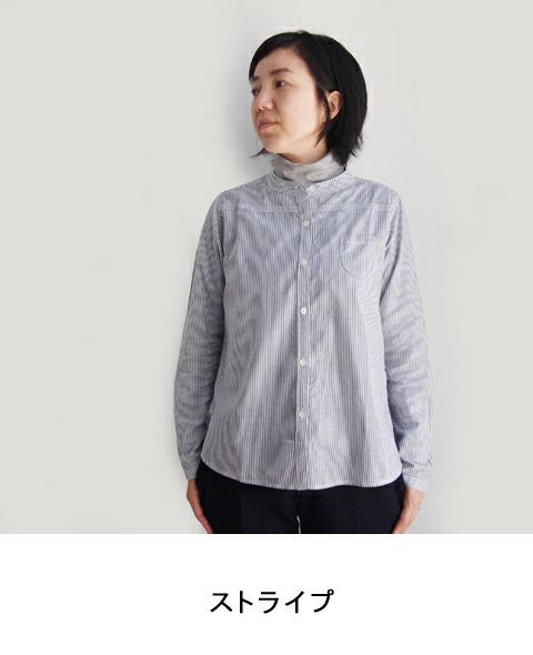 スタンドカラーのすっきりしたラインのシャツは、どこかクラシカルな雰囲気を持っています。