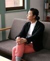 経糸に細番手のGIZAコットン、緯糸にコットンカシミヤを使用した、薄手ながら暖かみを感じる素材でつくりました。