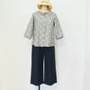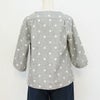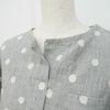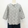 衿ぐりパイピングの始末の丸さ、小さめの胸ポケット、袖口のギャザーがほどよい甘さと、かわいらしさをプラスしたクラシックなブラウスになっています。