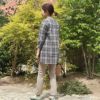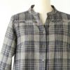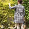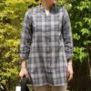 ネイビーをベースにした、印象的なチェック柄の綿麻ロングシャツです。袖丈は8分袖、ほどよくお尻が隠れる着丈です。