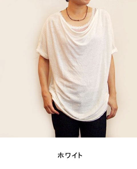 リネン天竺オフカラー半袖TEE