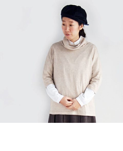 ドロップショルダーのオフタートルはゆったりとした着心地です。