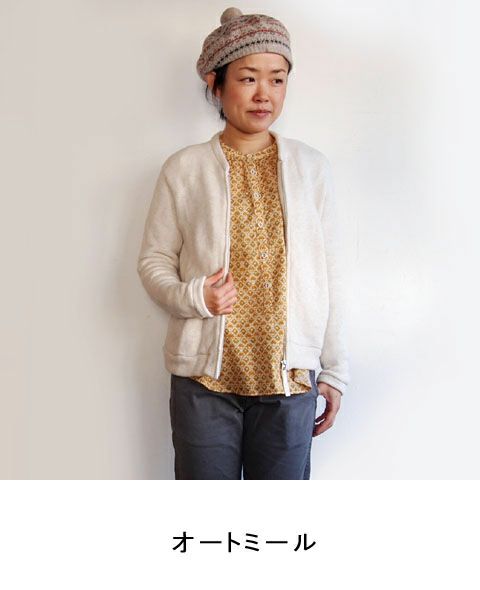 ラフなジップアップカーディガンは、ナチュラルな素材感で落ち着きのある印象です。