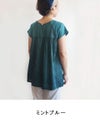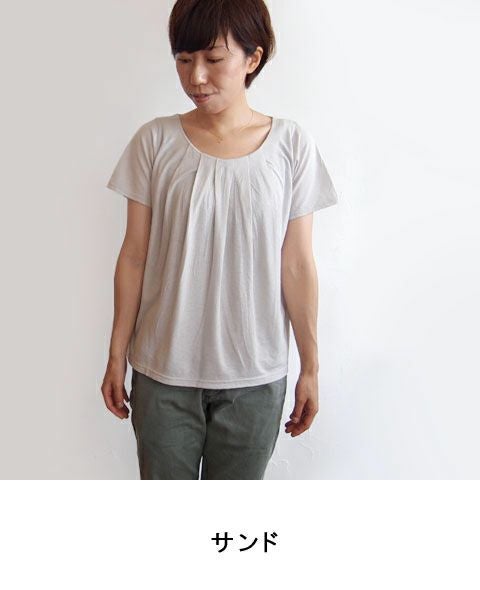 綿100%でクリアな表面感としなやかなドレープ性のある素材。 上品で自然な光沢感とエレガントな清涼感のある強撚SZ天竺カットソー。 前身頃にタックをとったシンプルなデザインカットソーです。 Aラインのシルエットが素材の清涼感と合い、まとわりつかず快適な着心地です。