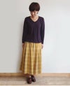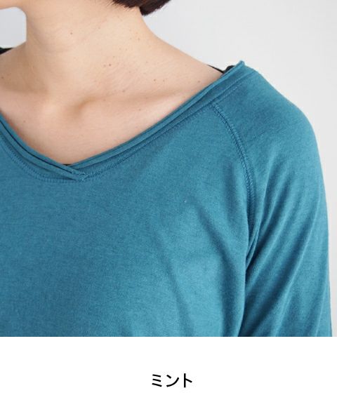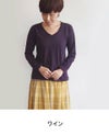 薄手のウール混ウォッシャブル。秋を感じるやや深みのあるカラーが魅力です。 継ぎは飾りステッチを使用し、さりげないアクセントに。 モダール混の伸びの良い素材なので、インナーにシャツを合わせるのもオススメです。 Vネックあきのシンプルな形で衿ぐりは断ち切りの軽い仕様にし、適度なカジュアル感を出しています。