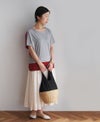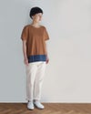裾と後身頃の配色切替がポイントのTシャツは、ドロップショルダーでややゆったりしたシルエットです。