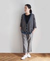 厳選されたリネンを丁寧に編みたてたボーダー柄のリネンジャージ。 夏でもさらりと肌触りよく、軽く柔らかな風合いです。 ドルマンスリーブのゆったりとした着心地のVネックカーディガンは、冷房対策としても使えます。 衿ぐりから前立てと裾のラインを無地でトリミングしました。