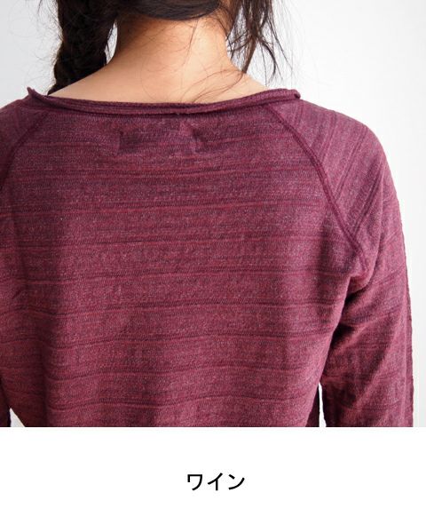 トルコのイズミール地方で採れる細番手の高品質な綿糸を使用して、ジャカード柄を織り上げました。 メランジ調の独特な色合いとしなやかな風合いが特徴です。 ゆるやかなVネックのシンプルなカットソー。 衿ぐりは堅くなりすぎないよう、断ち切りにしてカジュアル感を出しました。
