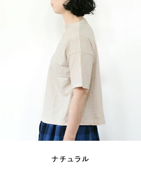 リネンの中でも上質なベルギーリネンを使用した、綿麻天竺のハイネックプルオーバー。 麻混にすることで強度が増し、光沢感やさらりとした肌触りなど、汗ばむ季節に嬉しい機能性もアップ。 ボートネックにほど良い高さの立ち襟をつけた、やや詰まった衿ぐりがポイントです。 ドロップショルダーのルーズな袖に、たっぷりとした身頃のボリュームはカジュアルなラフさを感じさせます。 素朴な雰囲気と風合いをお楽しみください。