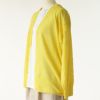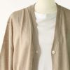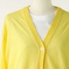 ボタンを留めてもインナーのネック周りがきれいに見える、浅いVネック開き。 羽織った時には縦ラインが強調され美しく、上品な印象です。