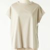 ソフトで肌触りの良いインド綿スムース生地に、バイオシル加工を施しています。自然な艶と光沢がプラスされた生地感で、カットソーながらも布帛のようなハリ感も併せ持つ上品な素材です。