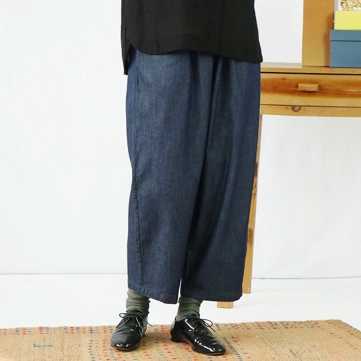 リネンコットンのデニム地を使った「le vent souffle(ルヴァンスフル)」のクロップド丈パンツです。