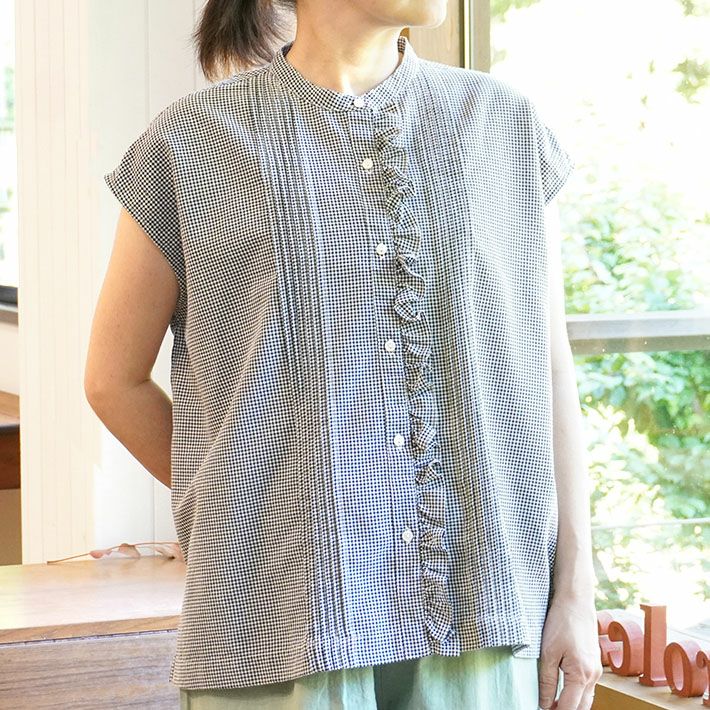 [le vent souffle]コットン混ギンガムフリルブラウス