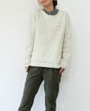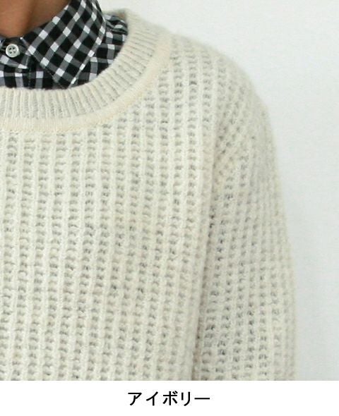 今では国内でも生産の限られたカラーネップをミックスした、手紡ぎ感覚のナチュラルな雰囲気の糸を使って編みました。 アンゴラ混で立体感のある編地が、ふんわりとした暖かみを感じさせます。 プルオーバーは後ろが長くなったデザインで、ヒップをきれいにカバーしてくれます。