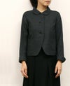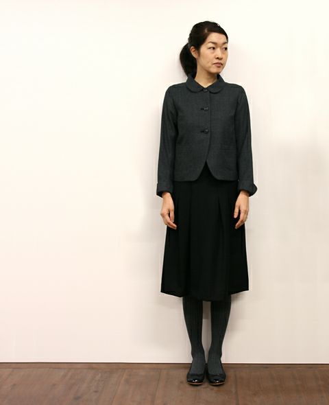 上質なウール素材の小さな千鳥柄。 立体感とやや丸みのあるショールカラーがやさしい印象のショートジャケットです。 袖口は軽さを出すため丸くカットしてスリットを入れ、折り返すことでアクセントにもなります。