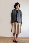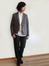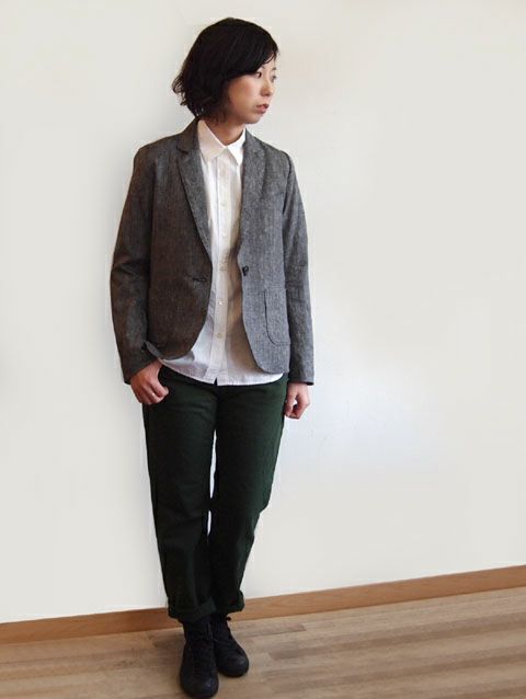 タテ糸にフレンチリネン糸、ヨコ糸に綿麻糸を使用したネップによるスラブ感が特徴の軽やかな素材。 ラペルを細めにした女性らしい印象です。 デニムやチノ・染パンツとも合わせやすいカジュアル感も併せ持つアイテムです。